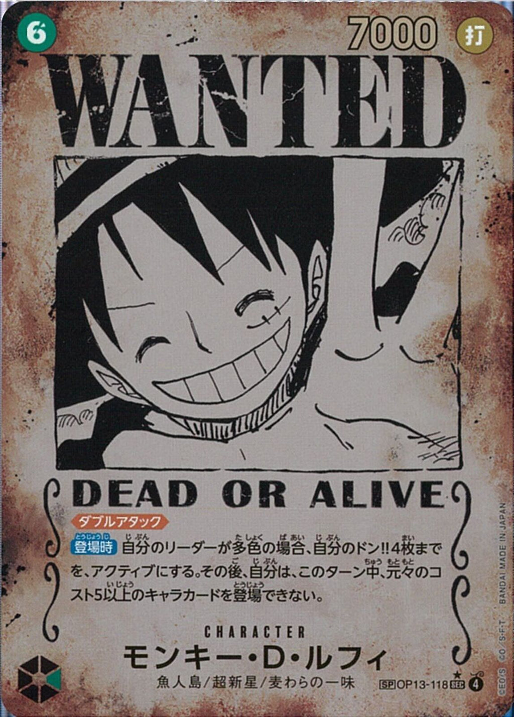 モンキー・D・ルフィ(WANTED)(OP13-118)SEC-P